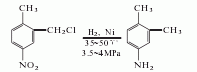 2、其制备方法是以对硝基为原料进行氯甲基化再加氢还原脱氯而制得。在反应釜内加入二氯甲醚、对硝基、氯磺酸,于15~20℃搅拌反应后,再经水解、过滤,滤饼洗涤得2-氯甲基-4-硝基,将2-氯甲基-4-硝基溶于中,加兰尼镍,先通氮气取代反应器内的空气,然后通氢气,控制温度35~50℃,压力3.4~3.9 mpa,通氢气完毕,蒸馏回收后,加氢氧化钠碱化,再以水蒸气蒸馏得成品。